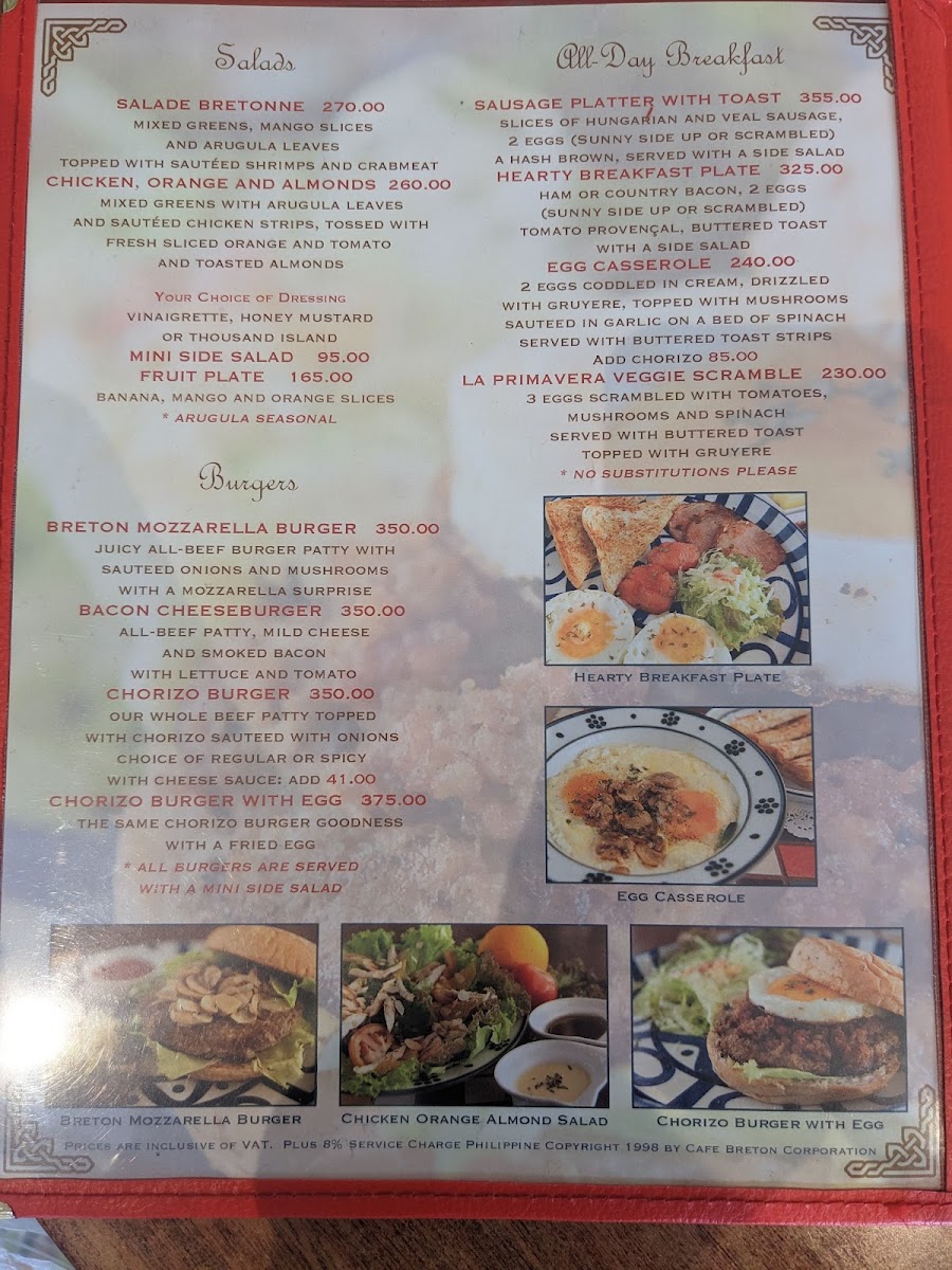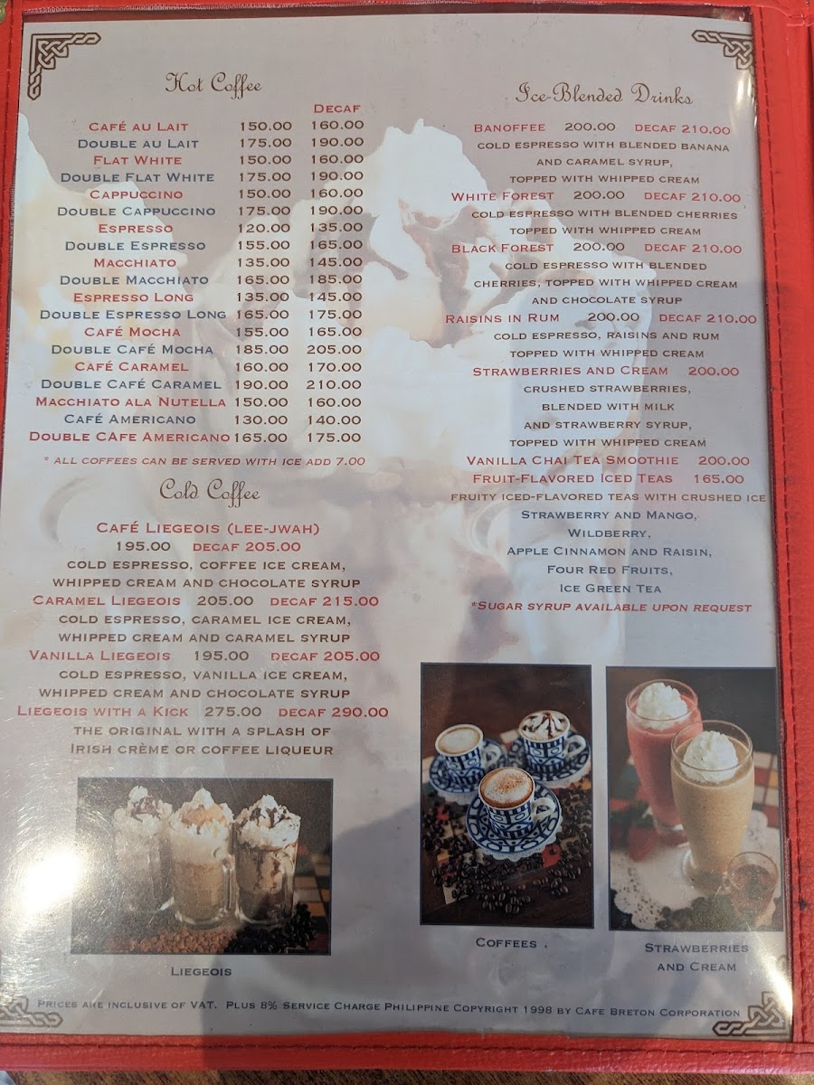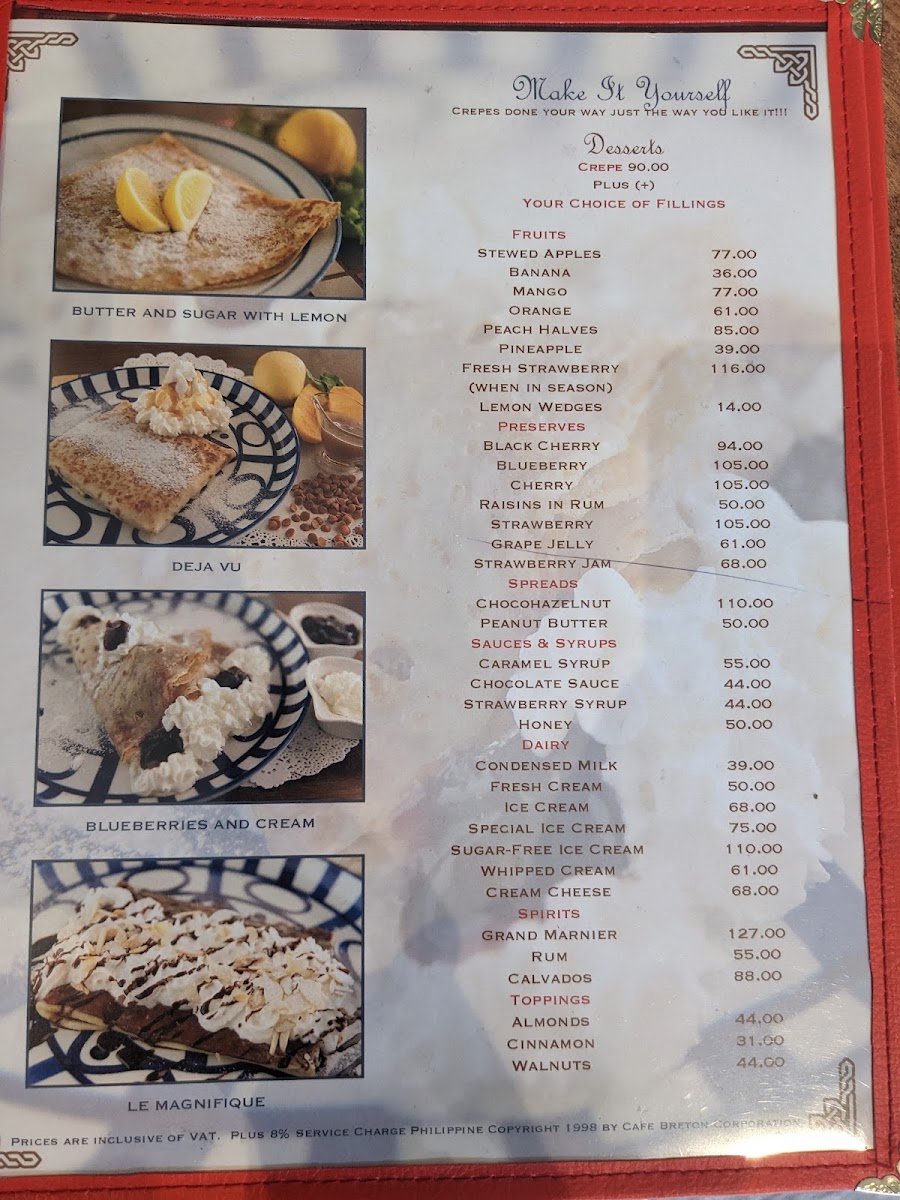 Cafe Breton Trinoma Menu